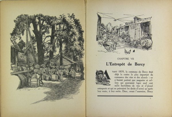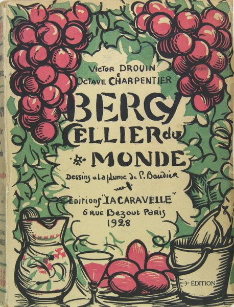 Editions la Caravelle, Paris, 1928. In/8 broché couverture illustrée en couleur, 234 p., illustration de Baudier dont un frontispice, 3ème édition. Dessins à la plume de P. Baudier graveur fameux né en 1881. Bercy était autrefois la Halle des vins à Paris, et constituait une “oasis. un refuge charmant”. Oberlé 443.