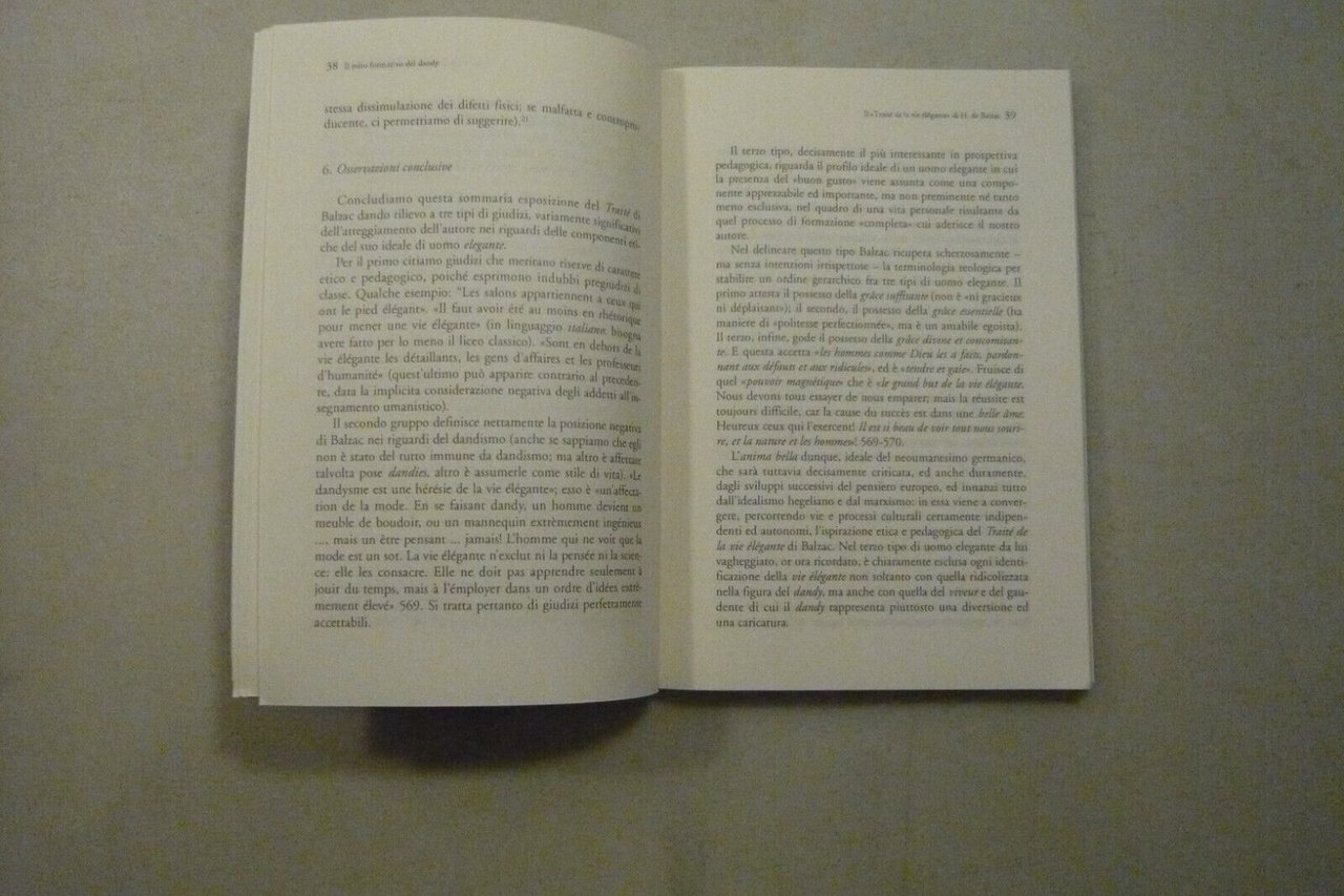 Indice Generale:Teoria dell’educazione PremessaI. Il “Traite de la vie elegante” di H.De Balzac, proposta etico-pedagogica (per la “politesse tenere et gaie” della “Belle ame”)II. Il “Du Dandysme et de George brummell” di J.A. Barbe D’Aurevilly e il principio della legereteIII. Il Dandismo eroico di Baudelaire banditore di pietà nel macabro esistenzialeRiepilogo critico comparativoAppendice