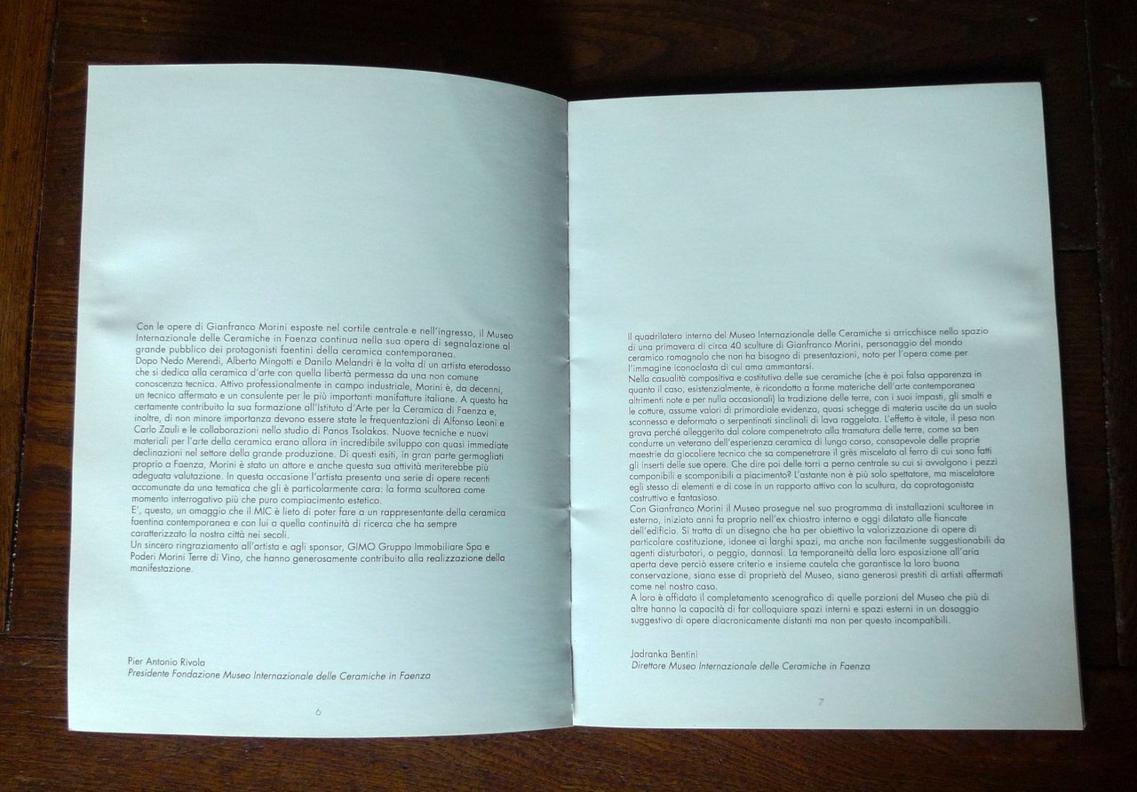 Bertoni,GIANFRANCO MORINI.GESTIMATERICI.Catalogo,2009 Faenza Museo Ceramiche