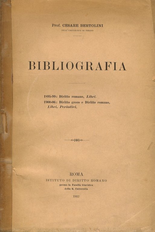 Bibliografia. 1895-99: Diritto romano, Libri. - 1900-06: Diritto greco e Diritto romano, Libri e periodici.