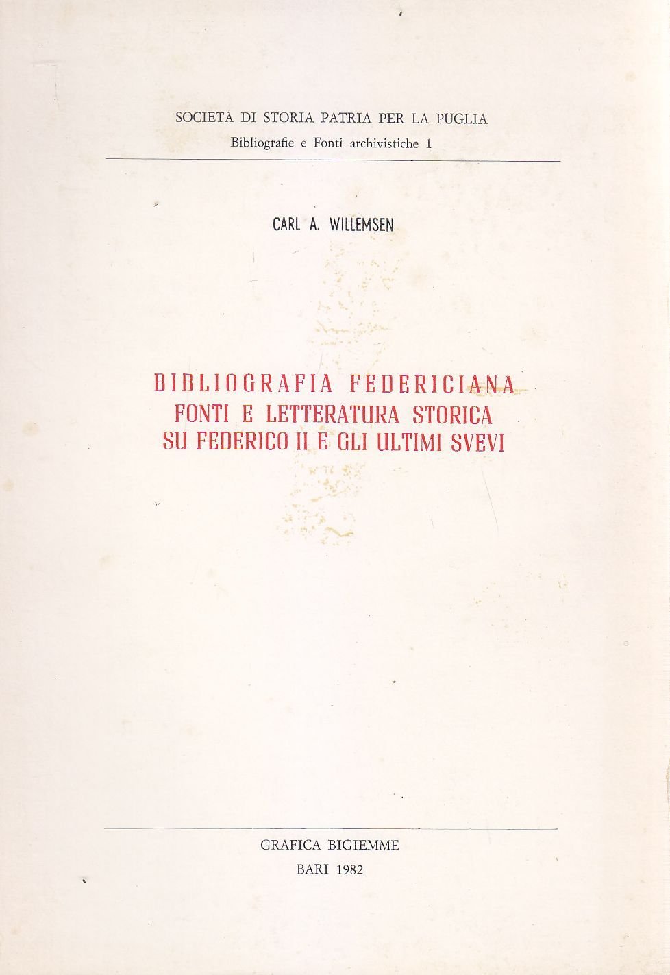 BIBLIOGRAFIA FEDERICIANA FONTI LETTERATURA STORICA SU FEDERICO II E ULTIMI SVEVI