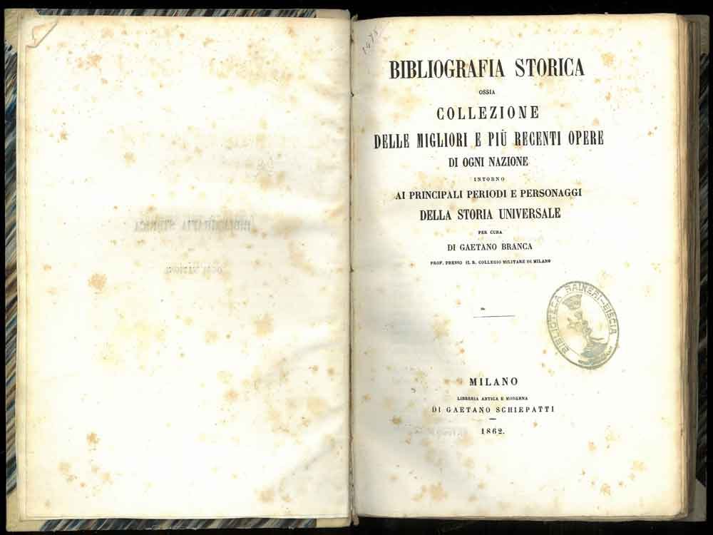 Bibliografia storica ossia collezione delle migliori e più recenti opere di ogninazione intorno ai principali periodi e personaggi della storia universale.