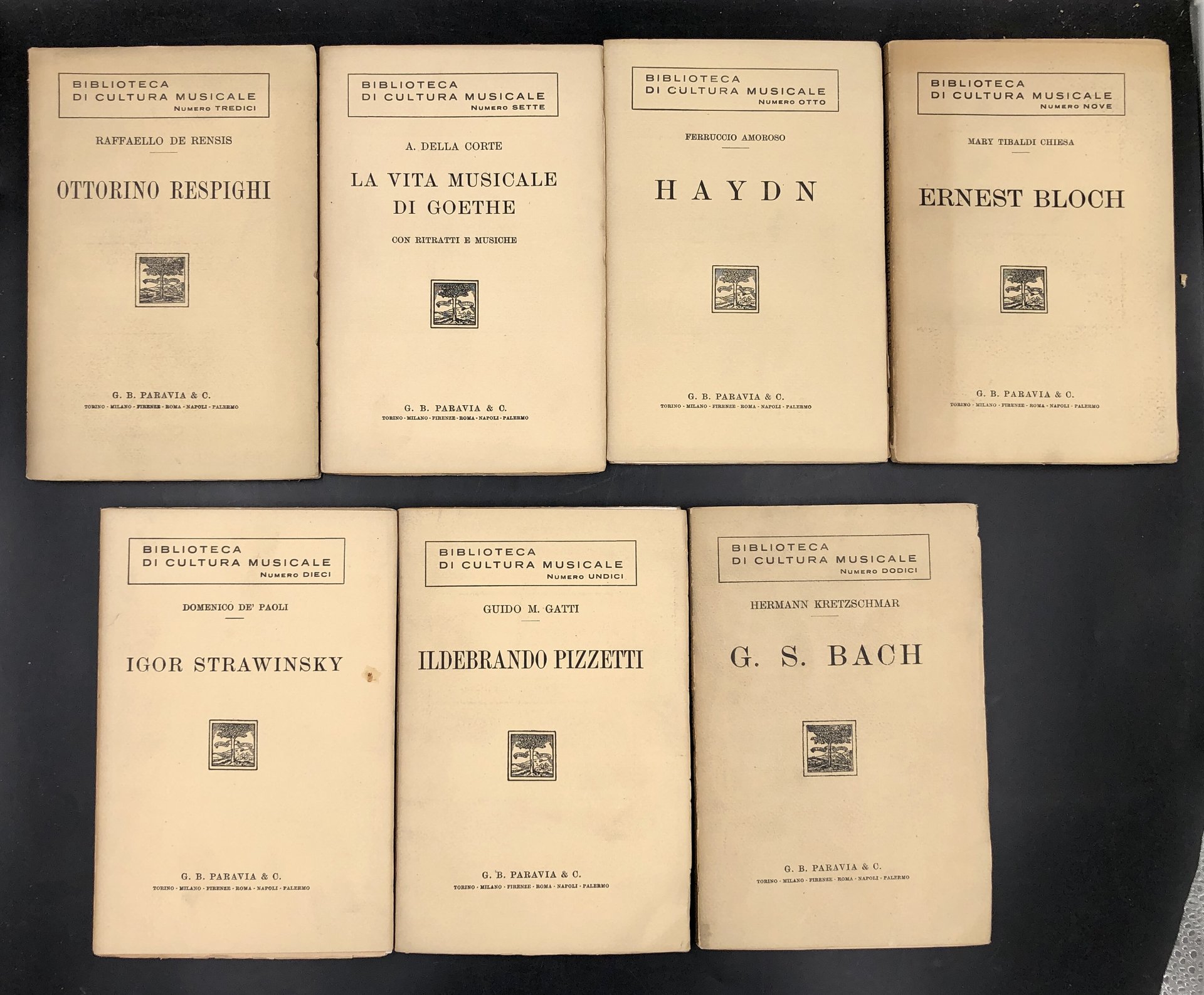 BIBLIOTECA di CULTURA MUSICALE Paravia, i nn. 7-13: GOETHE, HAYDN, Ernest BLOCH, Ildebrando PIZZETTI, BACH, Ottorino RESPIGHI.