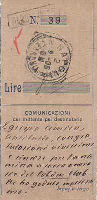 AUTOGRAFO“[.] mando [.] il mio estratto [.]. Il Tuur mi ha scritto da Budapest due lettere che ho ricevuto con gran piacere. E l’altra polemica co’ socialisti a Ravenna? Io le ho mandato tutto. E bramasi capire se il Resto del Carlino se n’è interessato [.]. Fra due o tre giorni conto di essere a Montecatini. Perché non mi fa una visitina? [.]