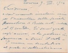 AUTOGRAFO“[.] Avrai ricevuto circolari varie per l’Assemblea della Società Promotrice di Belle Arti [.]. Ti sarei grato [.] se tu potessi intervenire e darci il voto [.]”.