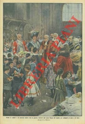 Bimbi di soldati e di marinai ora in guerra ricevuti dal Lord Mayor di Londra per colmarli di doni e di fiori.