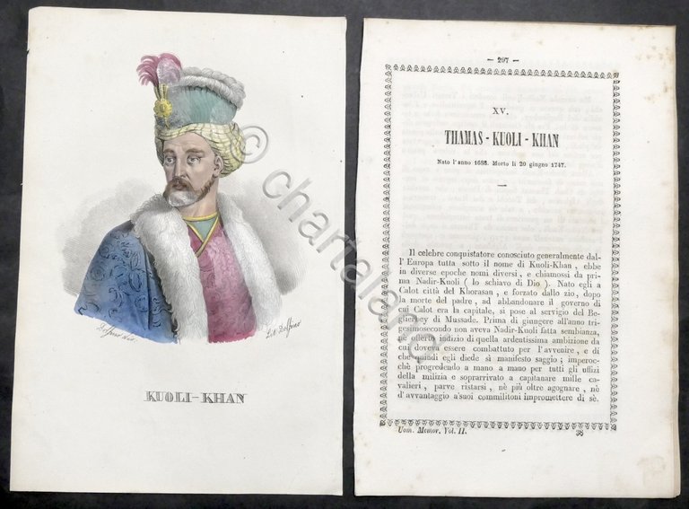 Biografia e stampa di Thamas Kuoli Khan - 1842