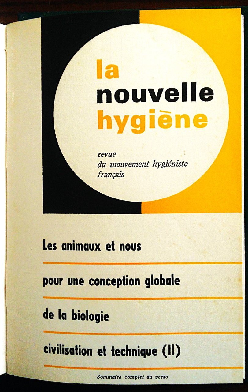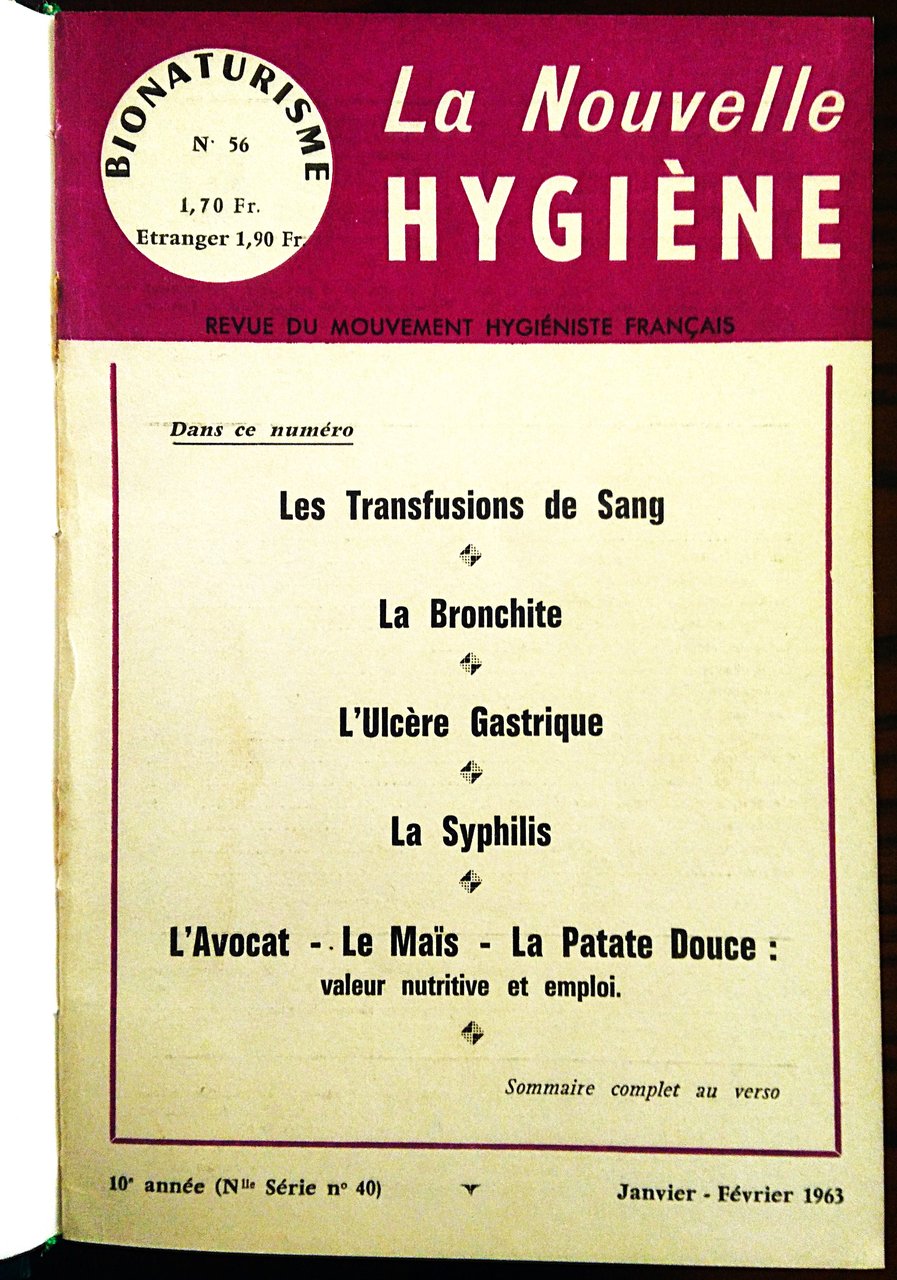 Bionaturisme, poi La Nouvelle Hygiene, Revue du Mouvement Hygieniste Francais, dal n. 1, mai-juin 1953 al n. 105, mars-avril 1971. Directeur Gérard Nizet.