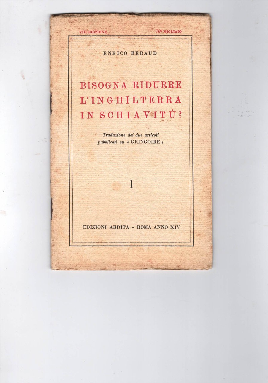 Bisogna ridurre l'Inghilterra in schiavitu?