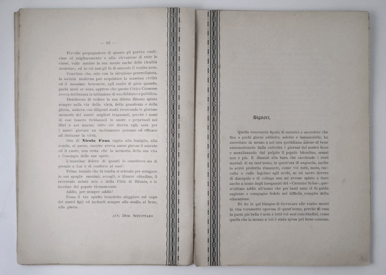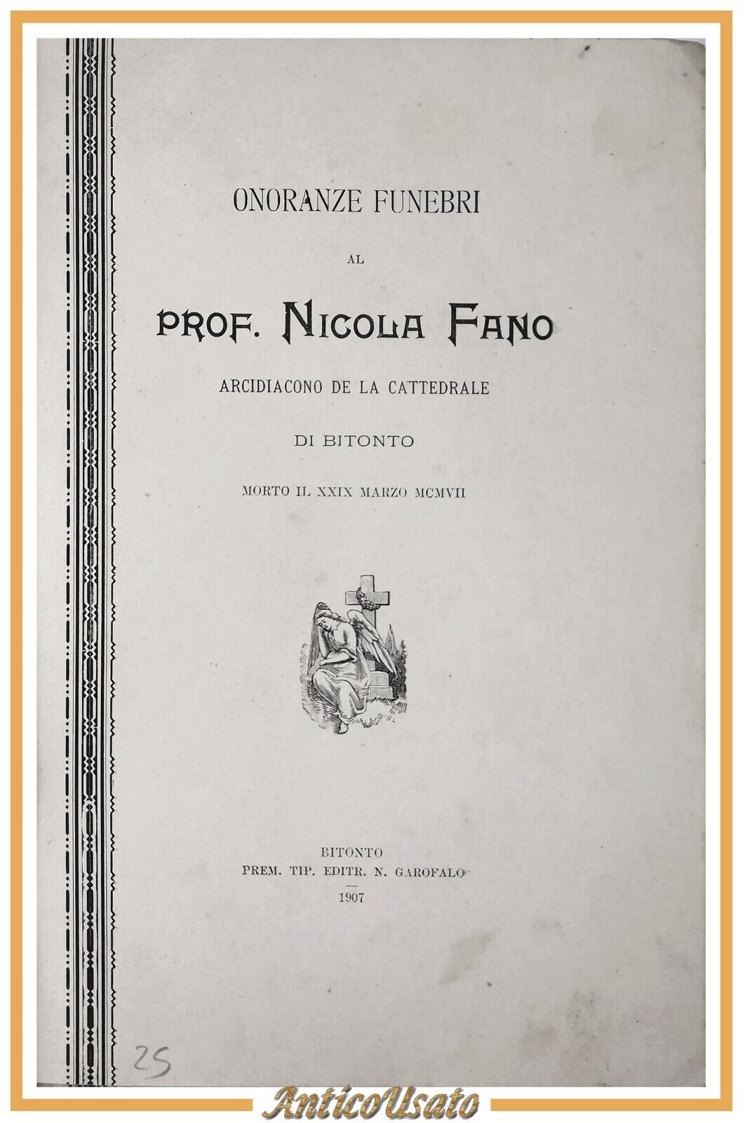 Bitonto ONORANZE FUNEBRI AL PROF NICOLA FANO 1907 Garofalo Libro Arcidiacono