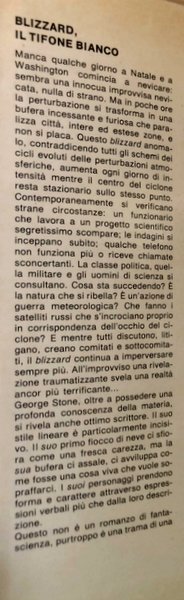 Soggetti: Narrativa, Romanzi, Letteratura Americana, Fantascienza, Fantasy, Libri vintage, Fuori catalogo, Anni Settanta, Clima, Meteorologia, Blizzard, Bufere, Tifoni, Perturbazioni atmosferiche, Gialli, Mistero, Cicloni tropicali, Guerra meteorologica, Guerra fredda, Disastri naturali, Fantapolitica, Geopolitica, Geologia, Scienze della terra, Racconti, Inverno, Nevicate, Neve, Tempeste, Thriller, Fantameteo, Precipitazioni, Comunismo, America, Russia, Spionaggio, Potere, Politica, Giallo, Mistery, Temperatura, Previsioni, Pioggia artificiale, Fiction, Novels, Literature, Sci-Fi, Fantasy, Books out of print, Seventies, Climate, Meteorology, Buffaloes, Typhoons, Weather perturbations, Mystery, Tropical cyclones, Meteorological war, Cold war, Natural disasters, Political science, Geopolitics, Geology, Earth sciences, Tales, Winter, Snowfall, Snow, Storms, Phantasm, Precipitation, Communism, Espionage, Power, Politics, Yellow, Temperature, Predictions, Artificial Rain, Freeze, Blizzard. Roman einer Katastrophe