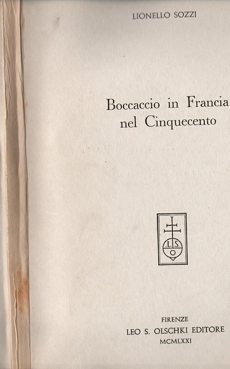 BOCCACCIO IN FRANCIA NEL CINQUECENTO di Lionello Sozzi 1971 Olschki Libro