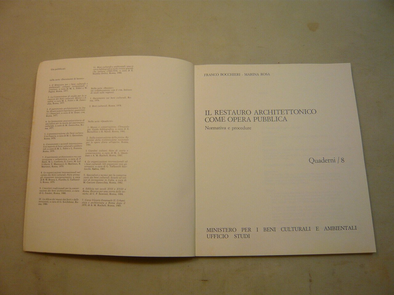 Ministero per i beni culturali e ambientali-Ufficio studi, Roma, 1987Brossura, 25x21,5 cm, pp. 104