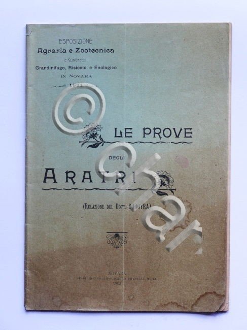 *** Agraria - Relazione sulle Prove degli Aratri - Esposizione Agraria e Zootecnica di Novara ottobre 1901 - ed. 1902. pp. 32. Relazione del Dott. Bodoyra. Interessante pubblicazione , fonte ricchissima di informazioni per studiosi, appassionati e collezionisti