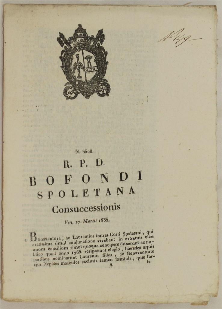 BOFONDI SPOLETANA CONSUCCESSIONIS VEN. 27 MARTII 1835