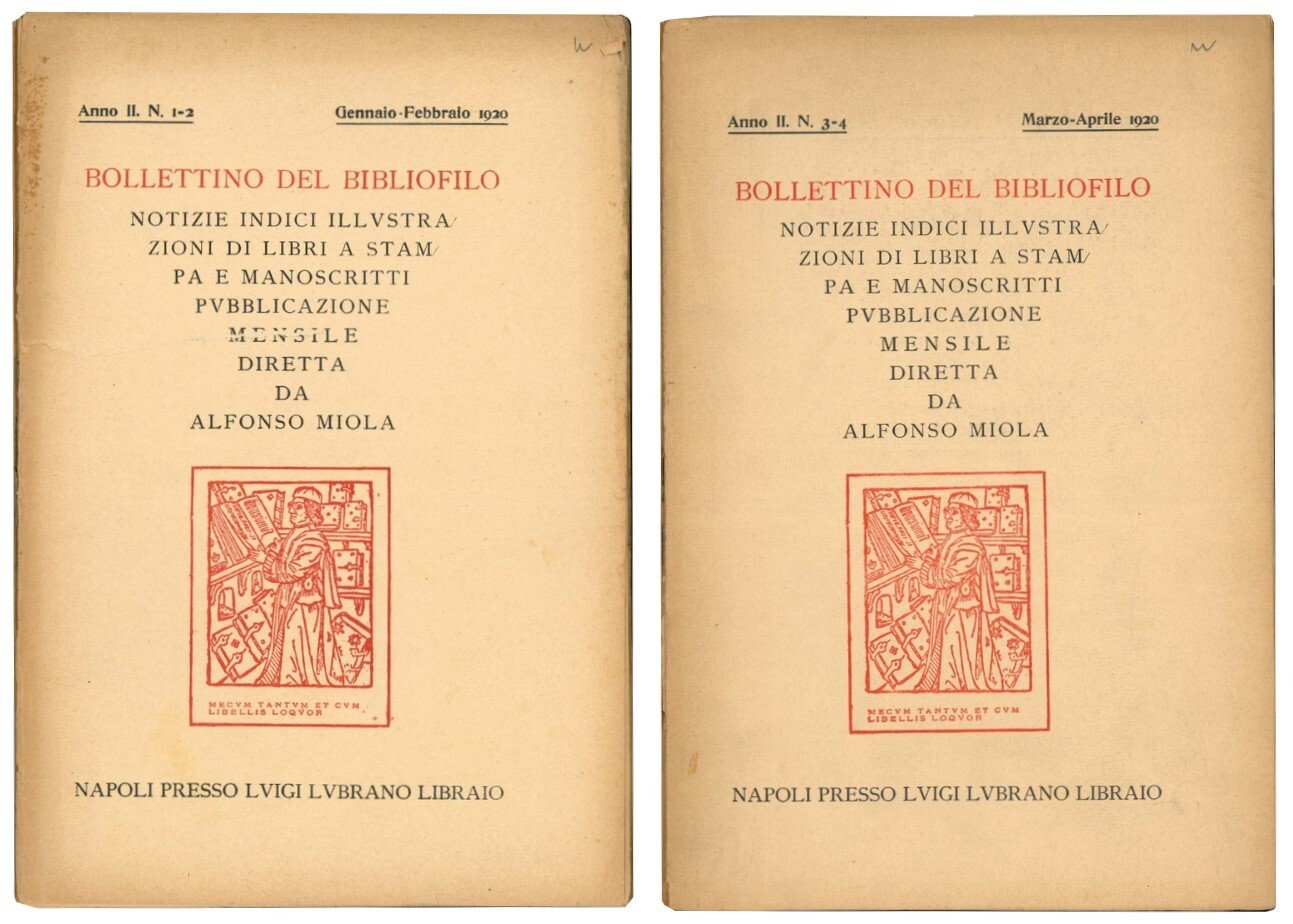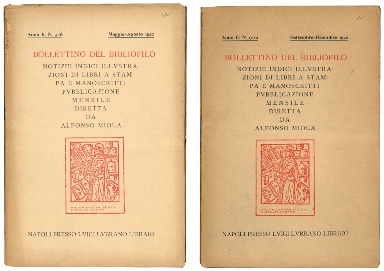 Bollettino del bibliofilo: notizie, indici, illustrazioni di libri a stampa e manoscritti. Pubblicazione mensile diretta da Alfonso Miola. Serie completa dell'anno II, nr. 1-2, 3-4, 5-8, 9-12.