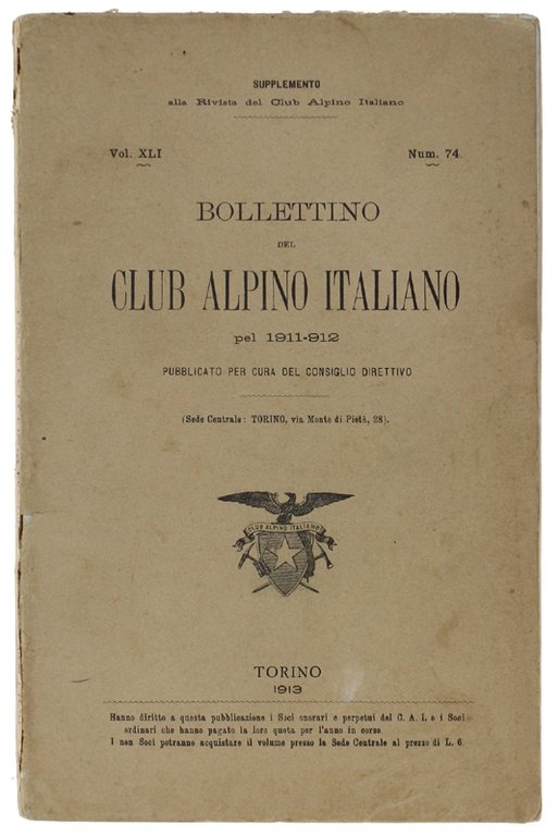 BOLLETTINO DEL CLUB ALPINO ITALIANO - Anno 1911-912. Vol.XLI - N.74.