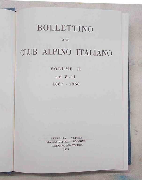 Bollettino del Club Alpino Italiano. Volume II. N.ri 8 - 11. 1867 - 1868.