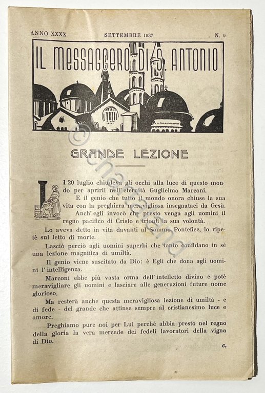 Bollettino della Basilica, Padova - Il Messaggero di S. Antonio N. 9 - 1937