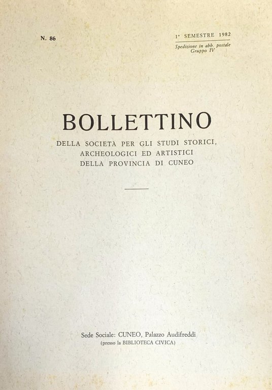 Bollettino della Società per gli Studi Storici, Archeologici ed Artistici della Provincia di Cuneo (n. 86, 1^ semestre 1982)