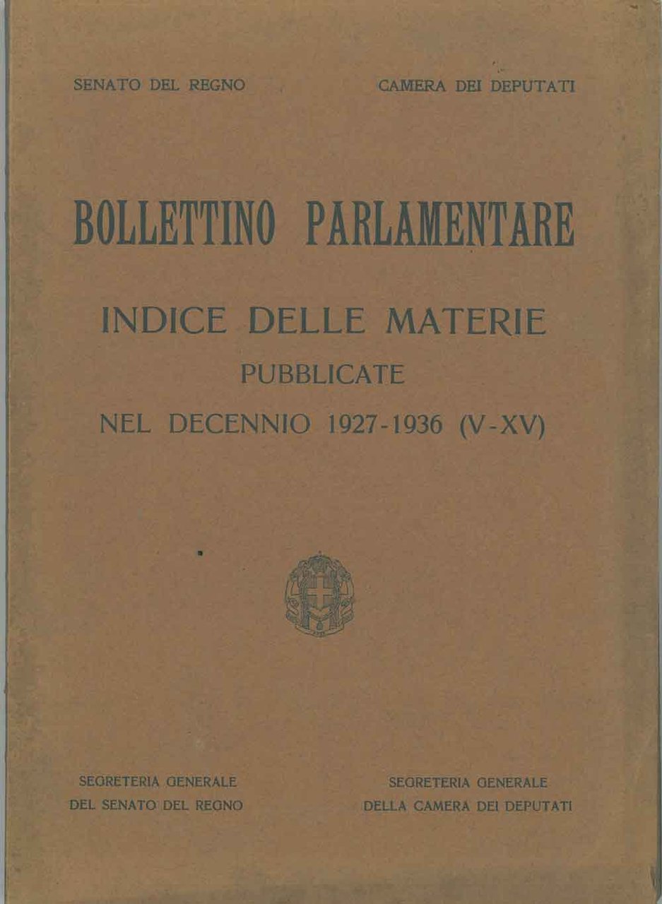 Bollettino Parlamentare. Indice delle materie pubblicate nel decennio 1927-1936 (V-XV)