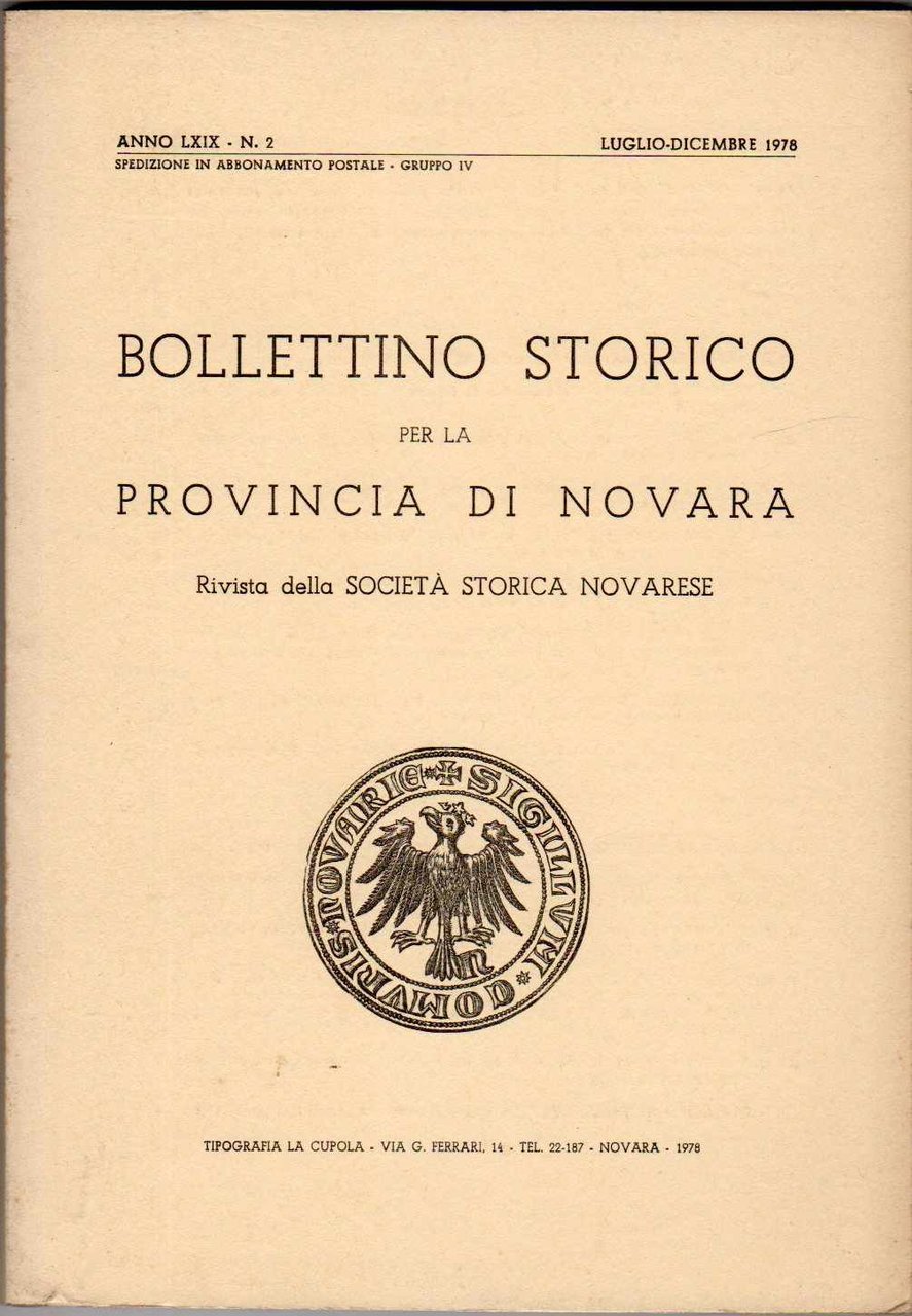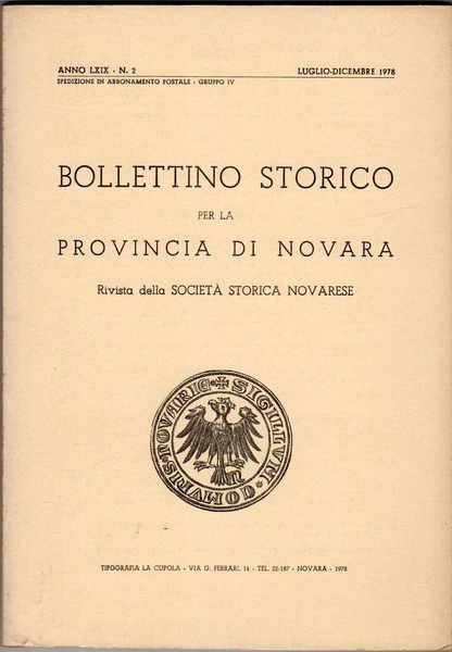 Bollettino storico per la provincia di Novara - Rivista della società storica novarese - Anno LXIX n. 2 - Luglio-Dicembre 1978