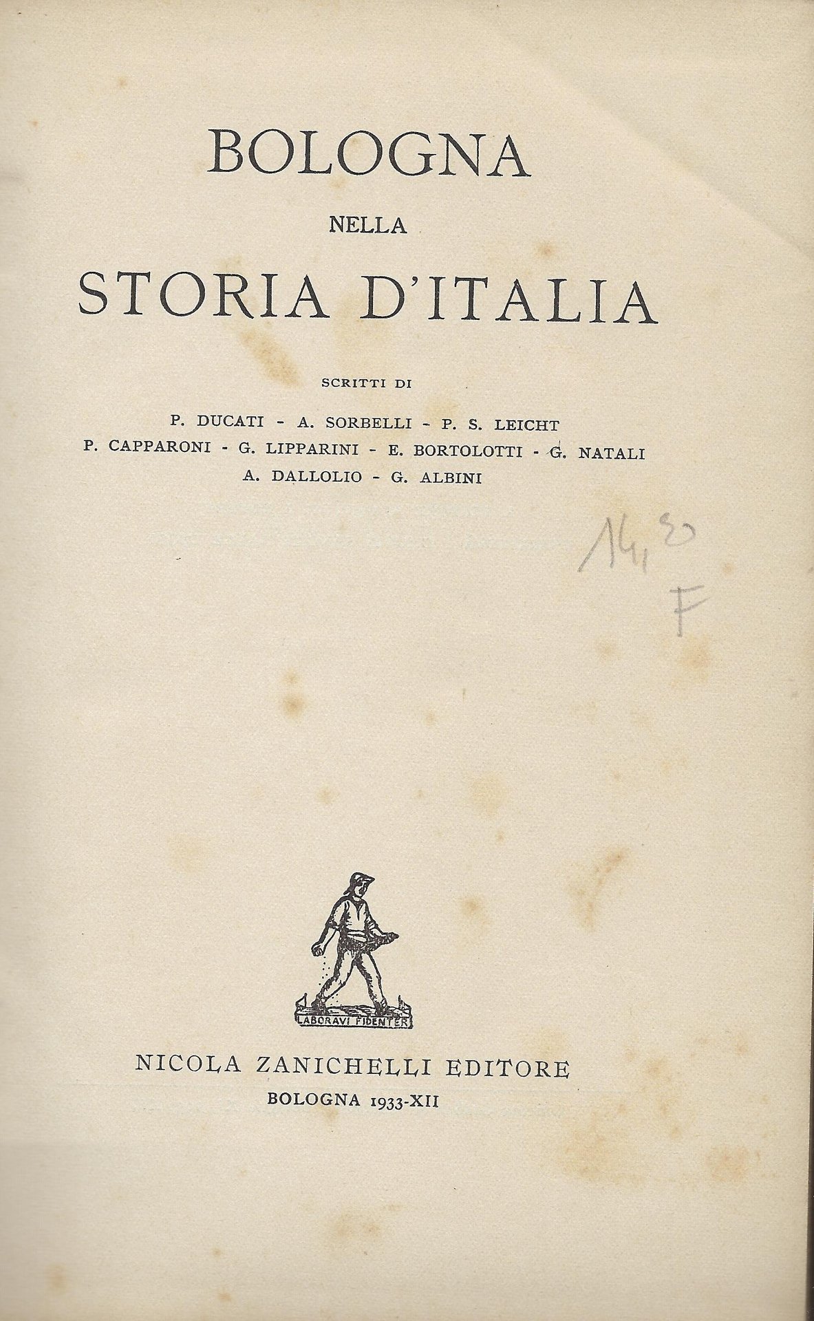Zanichelli, 1933. Scritti di P. Ducati, A. Sorbelli, P.S. Leicht et al, 236 pp. cartonato Buono (Good) piccole fioriture sui piatti e sguardie, volume intonso, leggibilità perfetta.