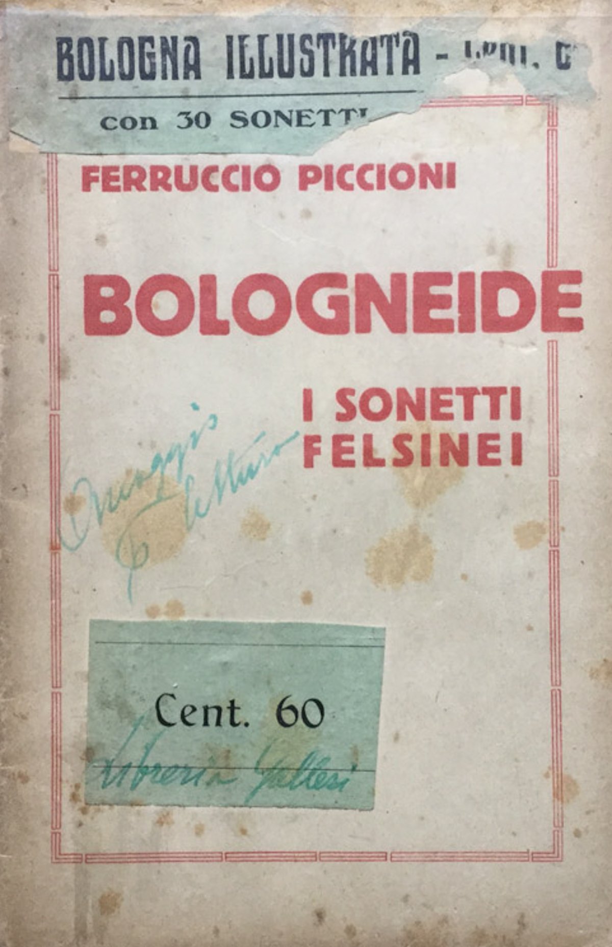 Rocca San Casciano, Cappelli, in 8vo, Brossura editoriale, 32 pp., in cale al libro dedica autografa dell'autore che corregge anche una parola dell'ultima poesia, Il Littoriale, in evidente omaggio al regime fascista. 851 LOC - P In Ottavi (15-23cm ) Mediocre (Poor) Accettabile