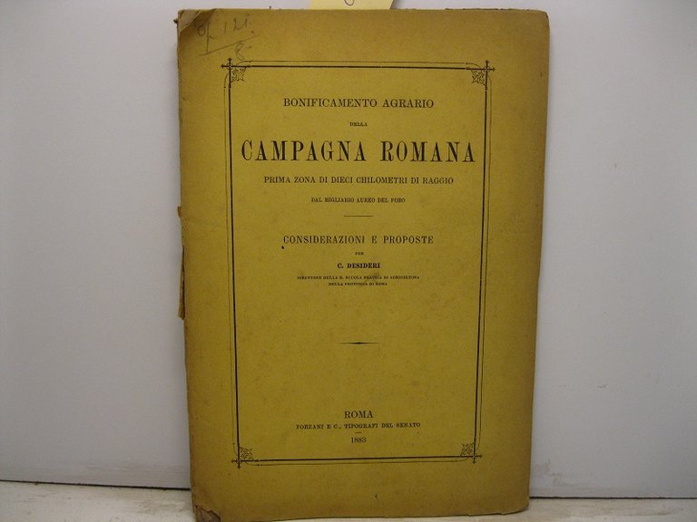 Bonificamento agrario della Campagna romana prima zona di dieci chilometri di raggio dal migliario aureo del Foro. Considerazioni e proposte.