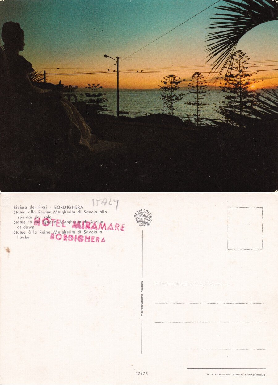 Bordighera (IM). Statua ala Regina Margherita di Savoia. Non viaggiata