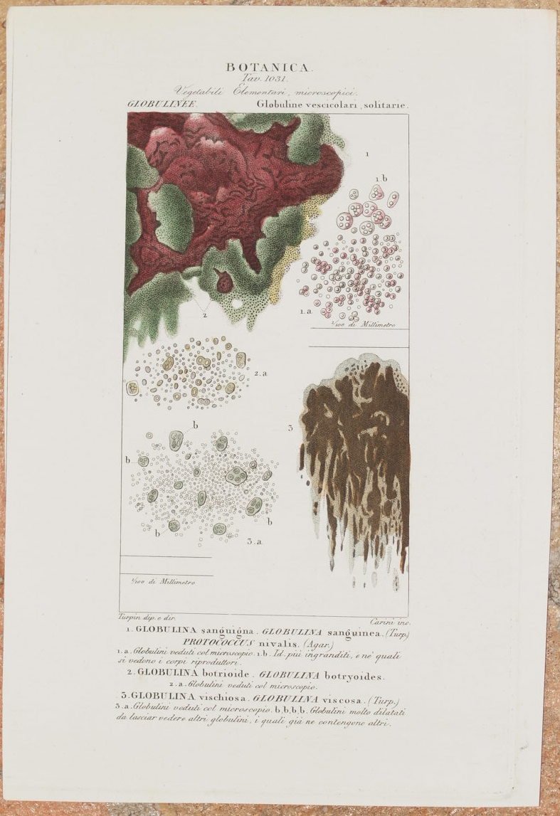 BOTANICA 1) Globulina sanguigna GLobulina sanguinea Protococcus nivalis 2) Globulina botrioide Globulina botryoides 3) Globulina vischiosa Globulina viscosa