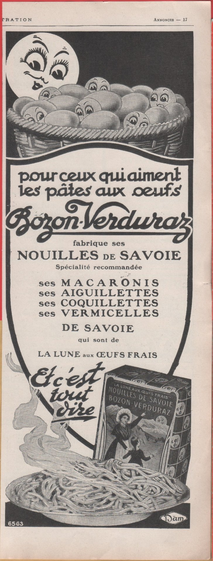 Bozon pates aux oeuf, Nouilles de Savoie. Advertising 1926