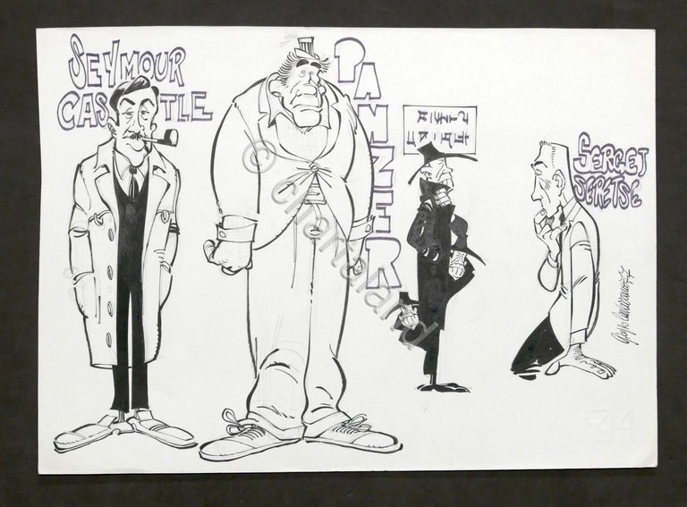 Bozzetto inedito originale disegnato e firmato dal fumettista Giorgio Cavazzano - datato 1977 Raffigura personaggi probabilmente proposti per un fumetto in stile poliziesco, disegnati a matita ed inchiostrati. Dimensioni: 25 x 34,5 cm ca. Condizioni molto buone. Giorgio Cavazzano (Venezia, 19 ottobre 1947) è un fumettista italiano, ritenuto uno dei principali autori italiani di storie con Topolino e Paperino. È noto soprattutto come disegnatore di fumetti della Disney pubblicati in Italia dalla Mondadori prima, dalla Disney Italia dal 1989 e dalla Panini Comics dal 2013, e dalle riviste Disney francesi come Mickey Parade e Le Journal de Mickey, oltre che di fumetti umoristici non disneyani e altri di genere realistico[1]. Ha all'attivo anche lavori nel campo dell'animazione e della pubblicità.