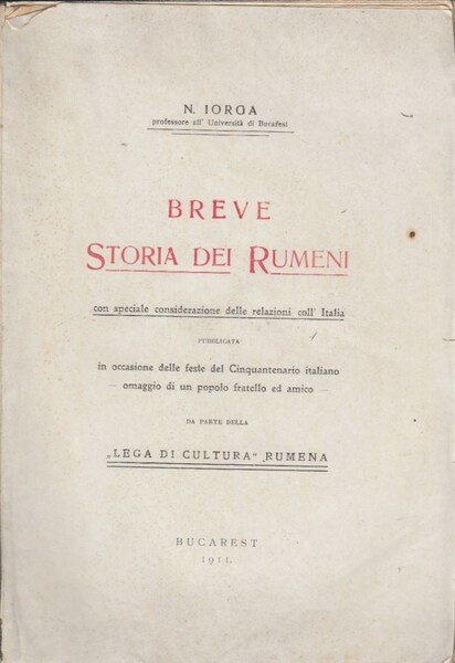 In-8 (Cm 24,5 x 17), pp. 176, brossura editoriale, illustrazioni bianco nero nel testo. Pubblicazione stampata in occasione delle feste del Cinquantenario italiano, omaggio di un popolo fraterno ed amico da parte della Lega di Cultura Italiana. Normali segni del tempo. MOLTO BUONO