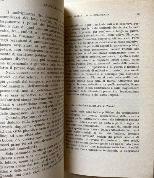 L'estensione e la dilatazione delle funzioni dello Stato è giunta a tal punto che il problema dell'effettivo potere della burocrazia tradizionale si pone in termini completamente diversi dal passato: anche perché il rapporto tecnocrazia-politica ha sconvolto antichi equilibri. Può dunque riuscire assai stimolante avviare oggi in sede storica un riesame del ruolo svolto dalla burocrazia nelle diverse età - dall'antichità a noi - facendo leva sul significato e l'importanza di questo corpo di funzionari nell'ambito delle singole comunità nazionali. La burocrazia, in realtà, è stata ed è un mondo più complesso e diverso di quanto traspare di solito dalle critiche di certa letteratura, ormai invecchiata, che ne ha fornito troppo a lungo una immagine convenzionale e poco veritiera. Nel nostro secolo, in particolare, è venuta maturando una nuova fase dell'organizzazione della società, che impone un accostamento, un incontro ed una eventuale compenetrazione della «direzione tecnica» e della burocrazia politica. Questa è la soluzione più avanzata dell'intera questione, che qui è seguita nelle sue linee storiche e nella recente problematica, senza pedanterie, con vivacità espositiva, con ricchezza di notizie. Tutte le inchieste e le discussioni sulla burocrazia, tutta la letteratura polemica, critica o di documentazione è messa intelligentemente a frutto in una armonica ricostruzione di fatti e di idee.