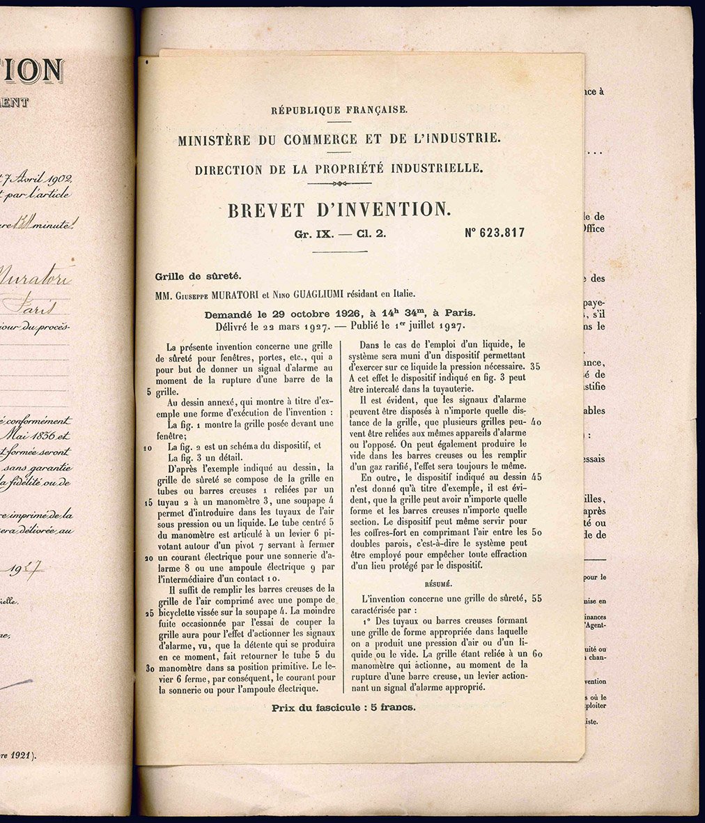 Brevet d'invention. Grille de suretè. Republique francaise. Ministere du commerce et de l'industrie. Brevet d'invention sans garantie du gouvernement.