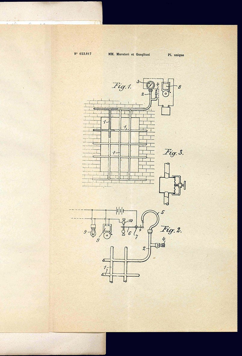 In 4°; pp. 2, con 1 tavola ripiegata che illustra l'inferriata antifurto ad aria compressa con allarme elettrico per porte e finestre. Cop. editoriale illustrata. Interessante.