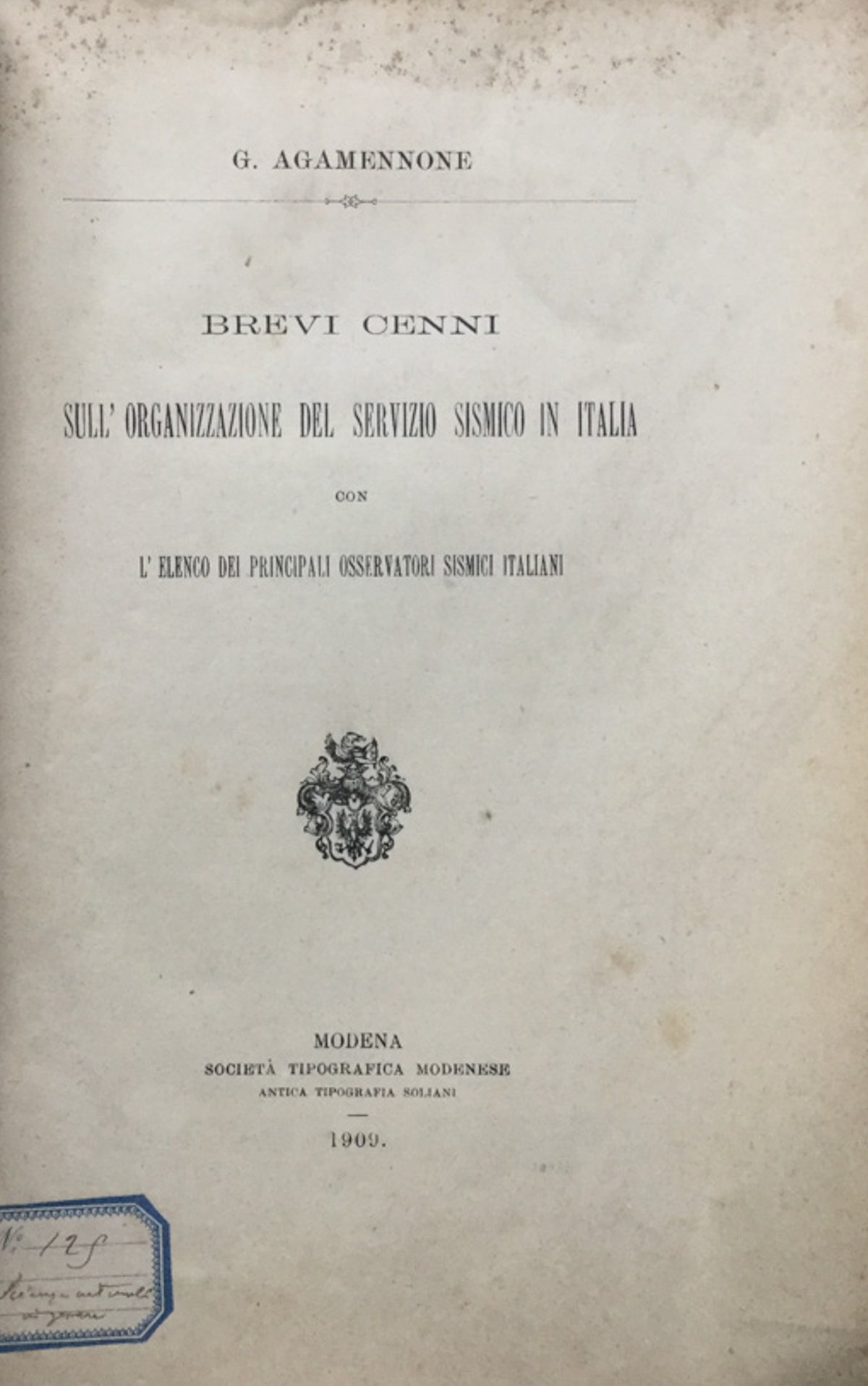 Brevi cenni sull'organizzazione del servizio sismico in Italia con l'elenco dei principali osservatori sismici italiani