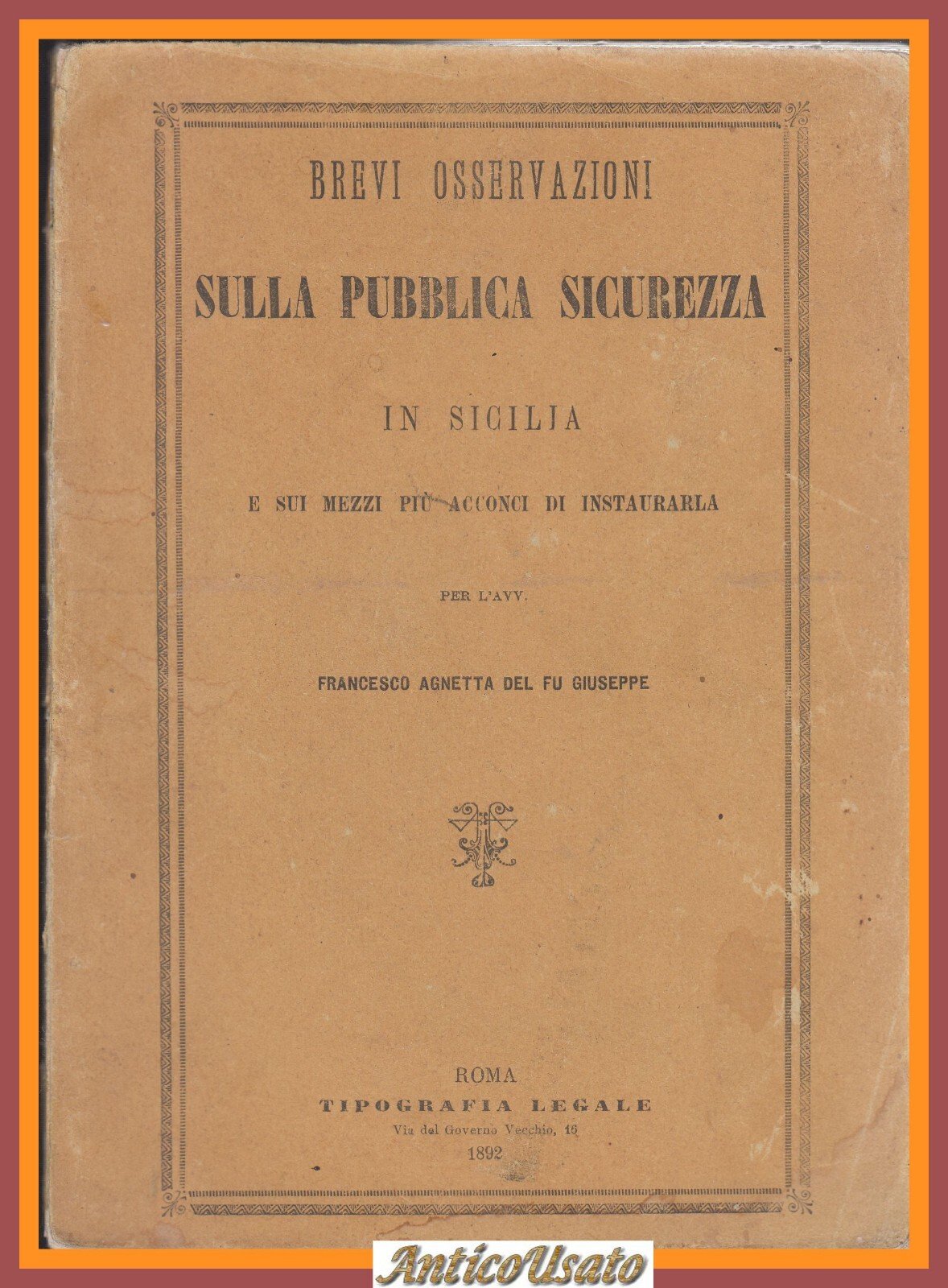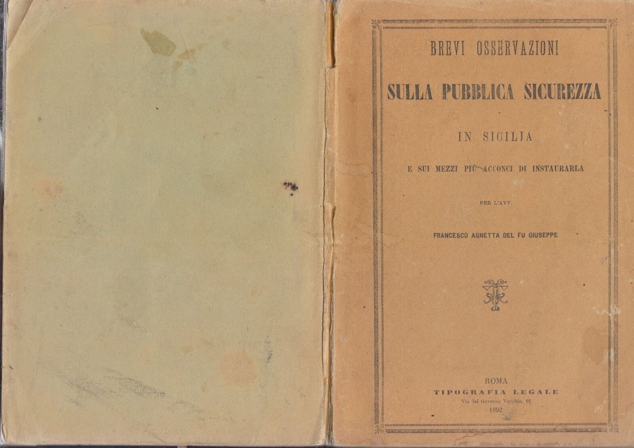 BREVI OSSERVAZIONI SULLA PUBBLICA SICUREZZA IN SICILIA di Francesco Agnetta 1892