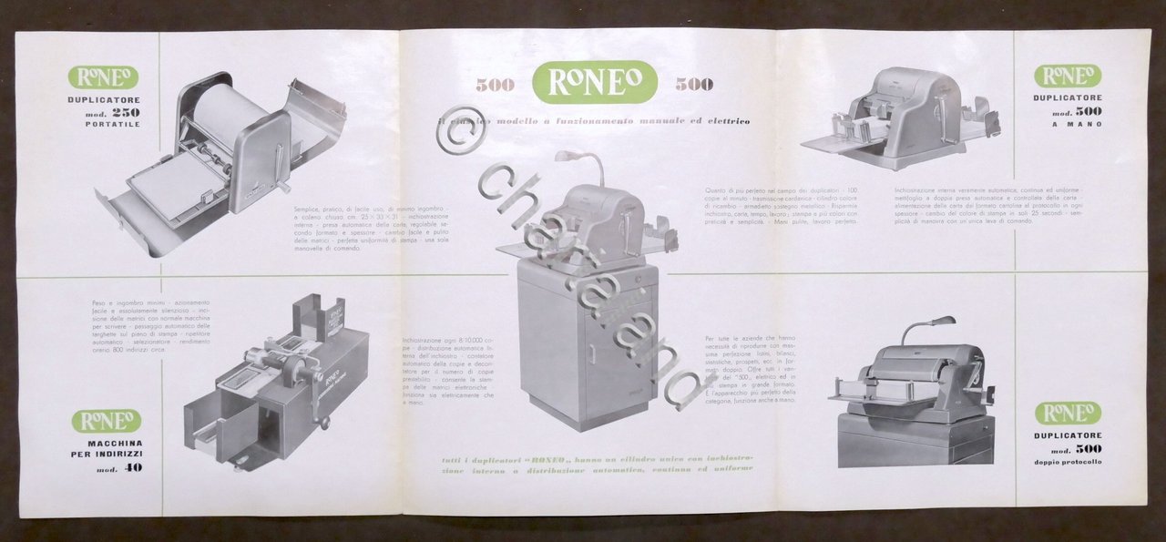 Brochure - Roneo - Duplicatori e macchine per indirizzi - 1960 ca.