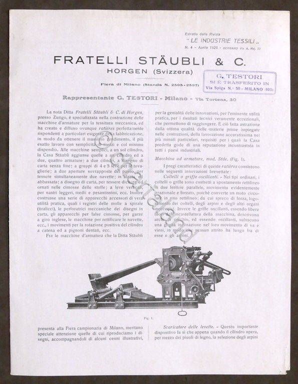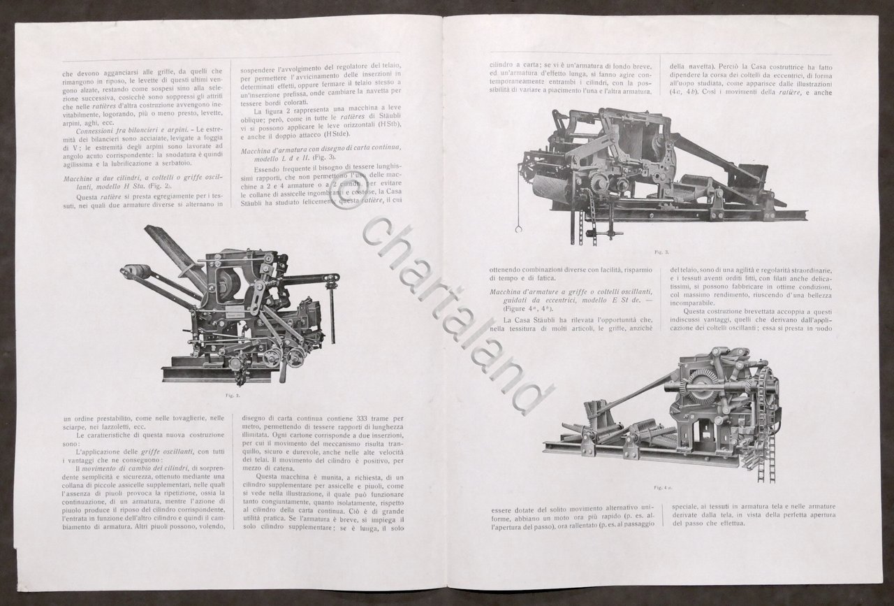 Brochure Industria Tessile Fratelli Staubli - Horgen Svizzera - anni '20 Pag. 4 con illustrazioni Lingua italiana. Condizioni buone.