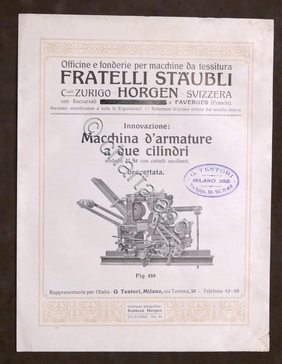 Brochure Industria Tessile Macchina d'Armature due cilindri - Staubli - anni '20