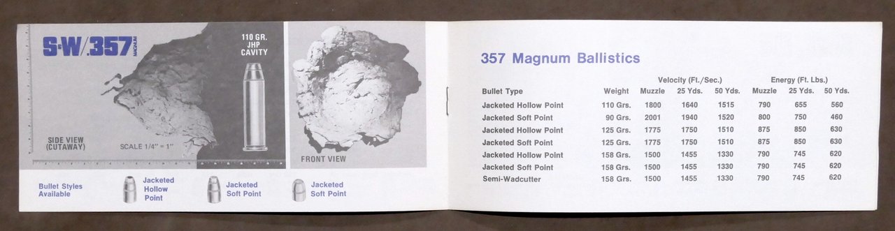 Brochure Smith & Wesson - 38 Special / 357 Magnum / 9mm - Ballistics Pag. 6 Copertina morbida - Testo in inglese. Condizioni molto buone.