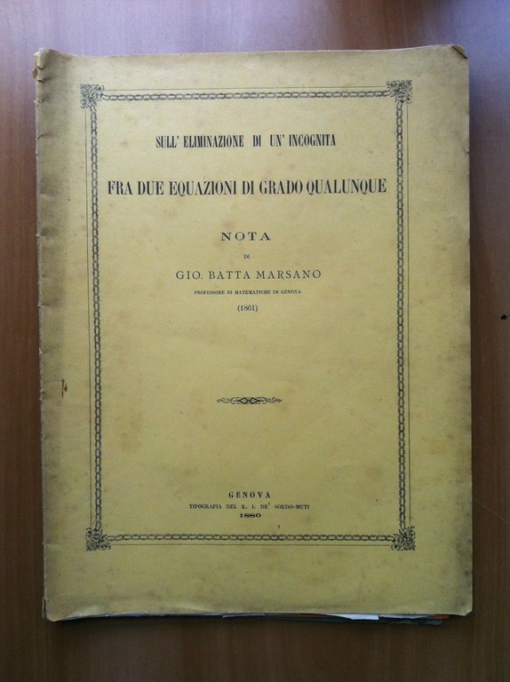 Brossura Eliminazione incognita fra equazioni grado qualunque 1880 - E16639