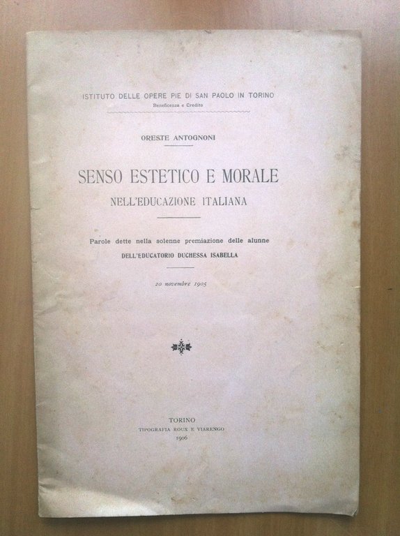 Brossura Senso estetico e morale nell'educazione italiana 1906 - E16546