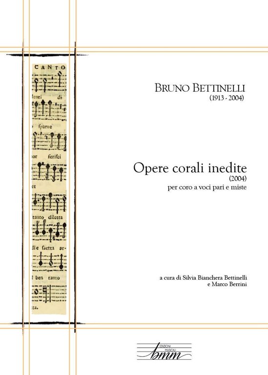 Un'antologia corale che raccoglie gli ultimi lavori inediti di Bruno Bettinelli, per coro a voci pari e miste, che il maestro milanese ha composto durante gli ultimi sei mesi di vita.