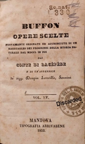 Buffon Opere scelte nuovamente ordinate ed accr. di un ragg. dei prog. della stor. naturale dal MDCCL in poi