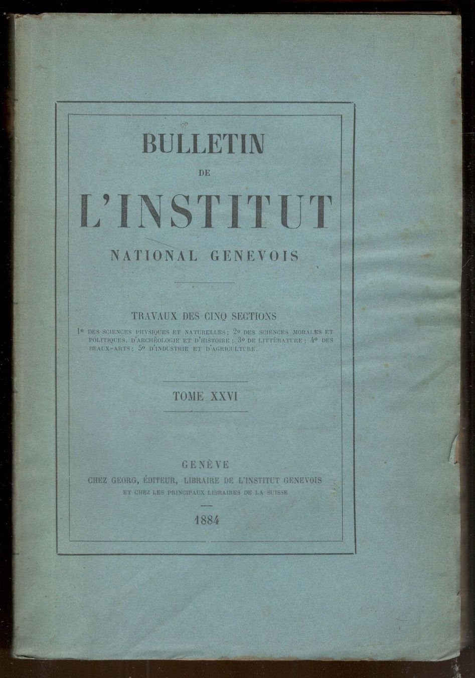 Bulletin de l'institut national genevois. Tome XXVI. 1884 | Libri antichi e moderni |
