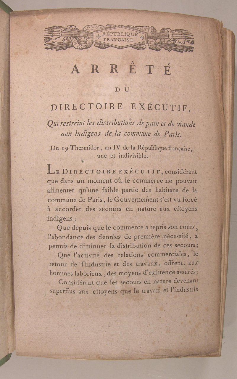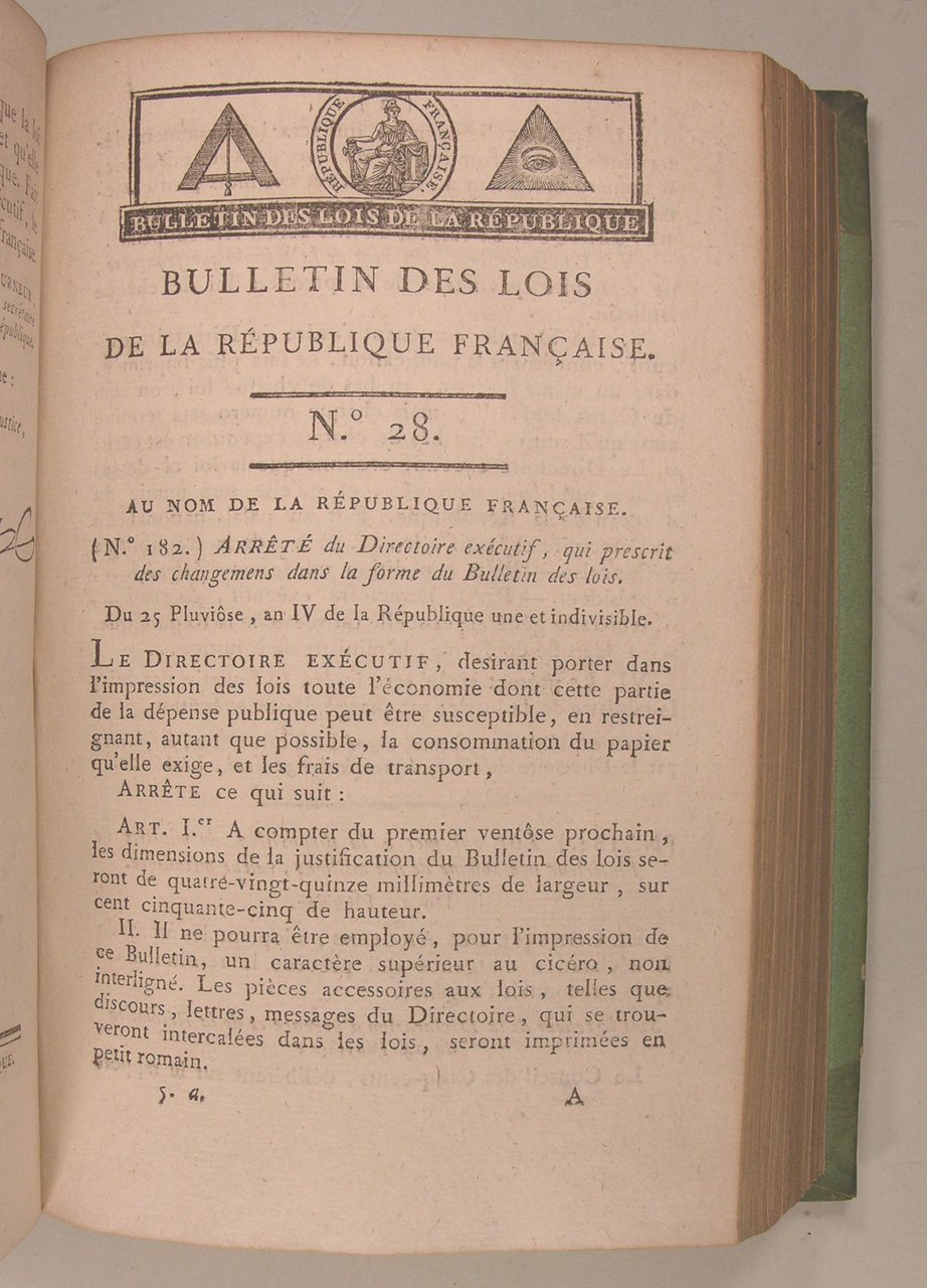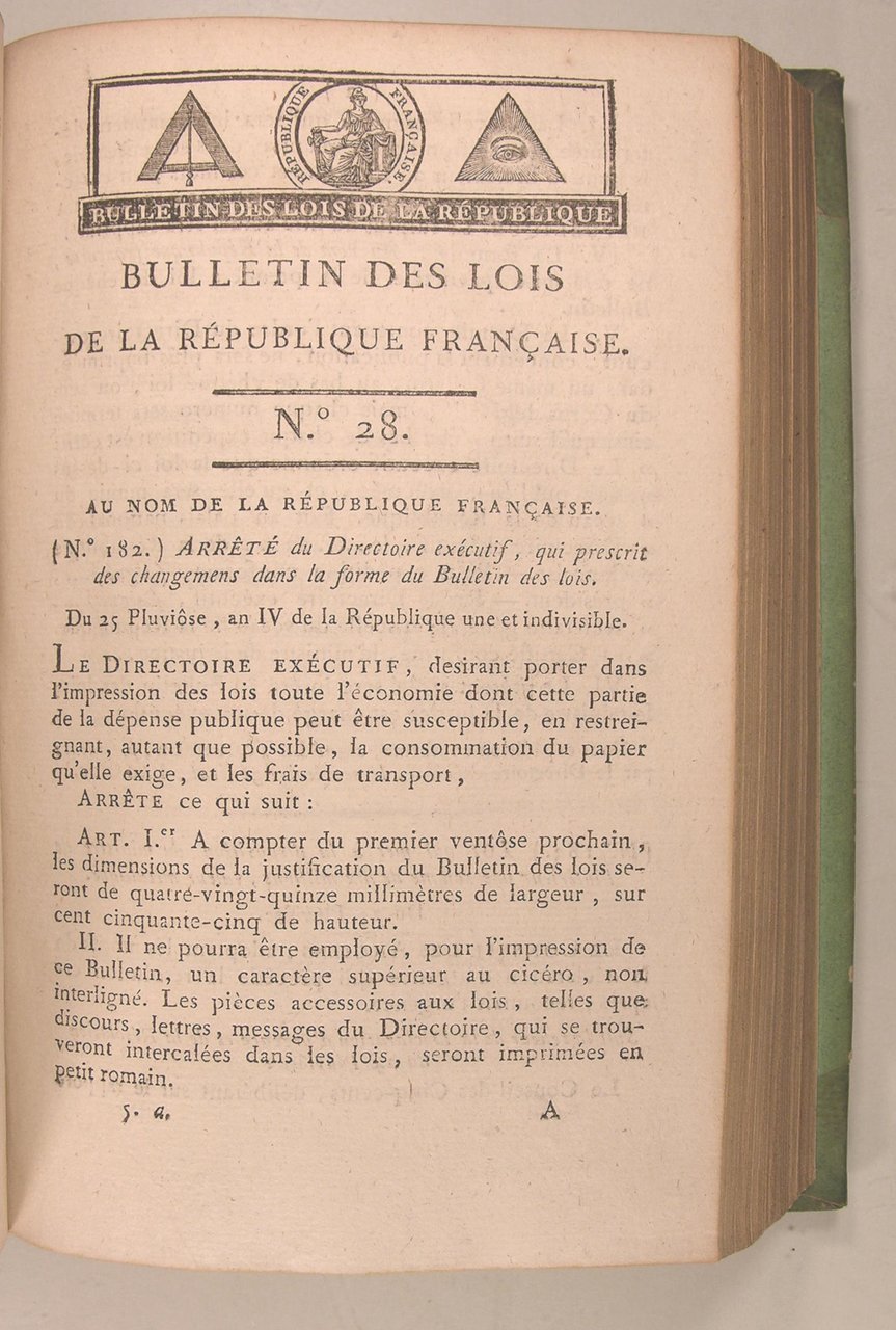 Bulletin des Lois de la République Française An IV de la république indivisible.