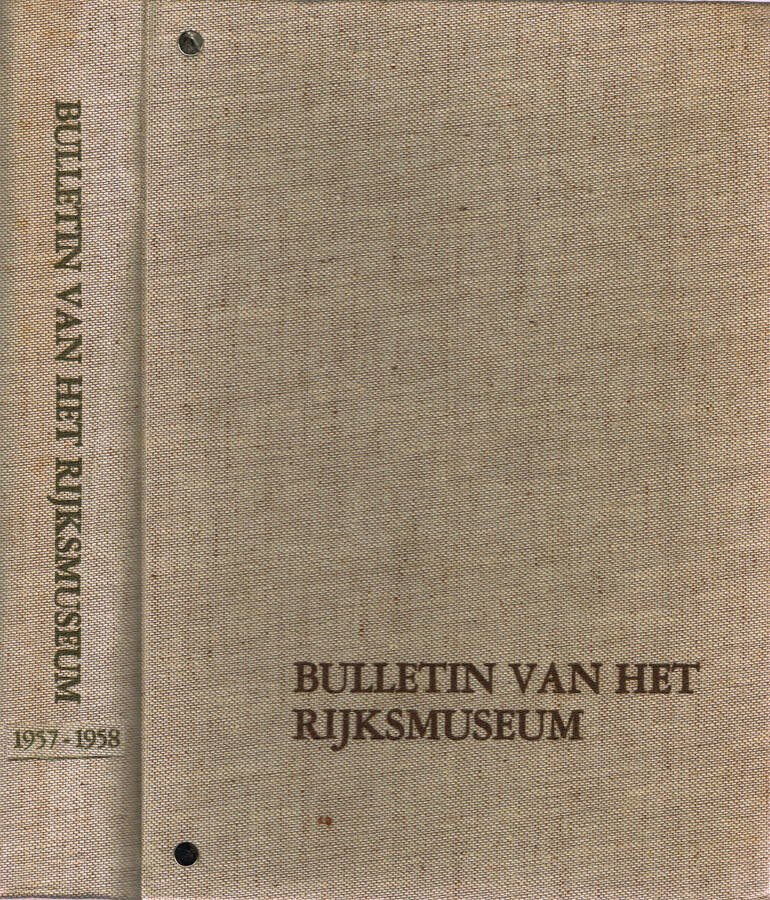 Anni 1957 e 1958, il primo completo composto da quattro spillati, NN. 1, 2, 3, 4 anno 1957, Volume V; dell'anno 1958 presenti i primi due spillati, NN. 1, 2, Volume VI, del periodico trimestrale Bulletin van het Rijksmuseum. Un volume composto da sei spillati rilegati con spille metalliche, buono stato, coperta originale in tessuto, titolo su piatto anteriore e dorso, qualche segno d'uso, tagli lievemente ambrati con fioritura, pagine, in carta patinata, ben conservate. Si è mantenuta la coperta originale di ogni fascicolo, illustrata, in carta patinata. Il volume presenta talloncino adesivo ex libris su risguardia, illustrazioni in b. e n., in testo e fuori testo, su risguardia di ogni fascicolo timbro d'appartenenza. Allegato fascicolo intitolato "Bulletin Rijksmuseum - Zesde Jaargang 1958 - Inhoudsopgave en register van kunstenaarsnamen" (Bollettino del Rijksmuseum - Volume VI 1958 - Sommario e indice degli artisti), timbro d'appartenenza su frontespizio. Lingue: Olandese, Inglese. Numero Pagine 168, numerazione delle pagine in sequenza.